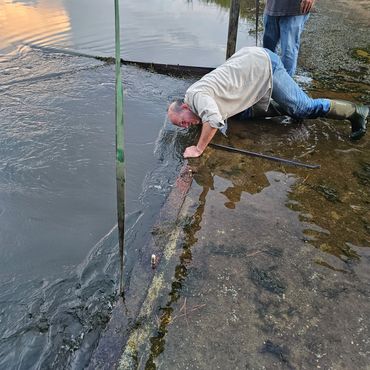 Following consultation with a concrete contractor, it has been determined that the lake will need to be partially lowered in order to stop the leak and allow for proper observation and the development of a repair plan. The lake is scheduled to be drawn down approximately 2 feet—or as much as necessary to halt the leak—beginning on September 6, 2025.