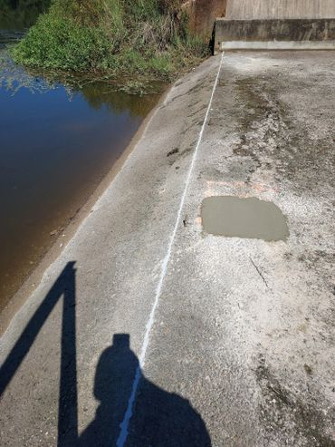 The Frog Pond Lake Water Control and Improvement District (FPLWCID) is notifying the Frog Pond Property Owners Association (FPPOA) of an urgent inspection and repair required on the spillway. A leak has been identified within the discharge chute of the spillway (see attached image for reference). The leak measures approximately 6 inches wide by 1/2 inch tall and is located about 3 feet above the bottom of the chute.